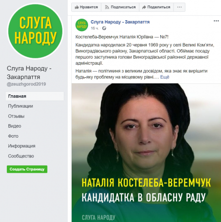 Костелеба-Веремчук Наталія є чинним депутатом Закарпатської обласної ради від партії «Блок Петра Порошенка «Солідарність».
