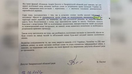 Фракція у Закарпатській облраді "Команда Андрія Балоги" відкликала свій підпис під заявою щодо припинення мовлення проросійських каналів.