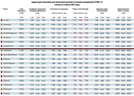 Так рівень епідпорогу для червоної зони перевищено на 11.6%, коефіцієнт виявлених випадків інфікувань 1.8%, рівень госпіталізації складає 7.7%, зменшився за цей рівень динаміки госпіталізації та завантаженість ліжок з киснем.