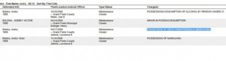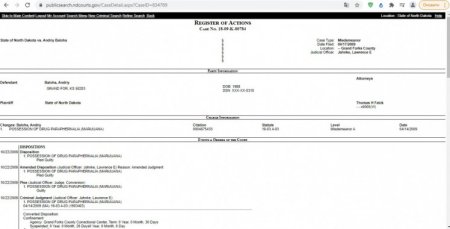 Пошук уреєстрі судових рішень Північної Дакоти, де вказані адміністративні та кримінальні справи Андрія Балоги за алкоголь і наркотики
