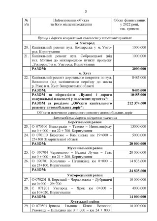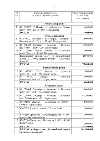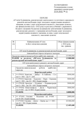 Закарпатська обласна державна адміністрація затвердила перелік доріг, що будуть фінансуватися у 2022 році коштом субвенції з державного бюджету місцевим бюджетам.