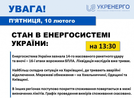 13 лютого «Укренерго» мало намір провести в Закарпатті, виміри споживання електроенергії для цього планувалося не відключати споживачів цілу добу.