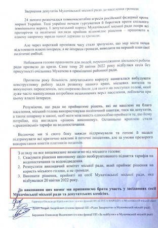 Депутати Мукачівської міської ради в чергове висунули голові громади Андрію Балозі - ультиматум.