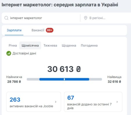 Задля справедливості погляньмо, що нам розповість про зарплати маркетологів сервіс Jooble:
