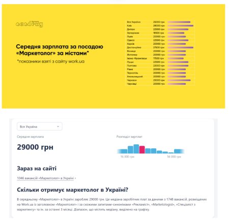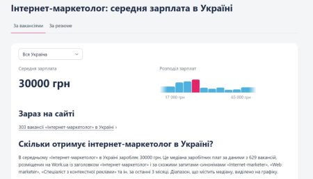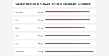 Дані практично ідентичні, тож можна впевнено сказати, що середня зарплата інтернет-маркетолога в Україні — 30,000 гривень або трохи більше 700 доларів США.