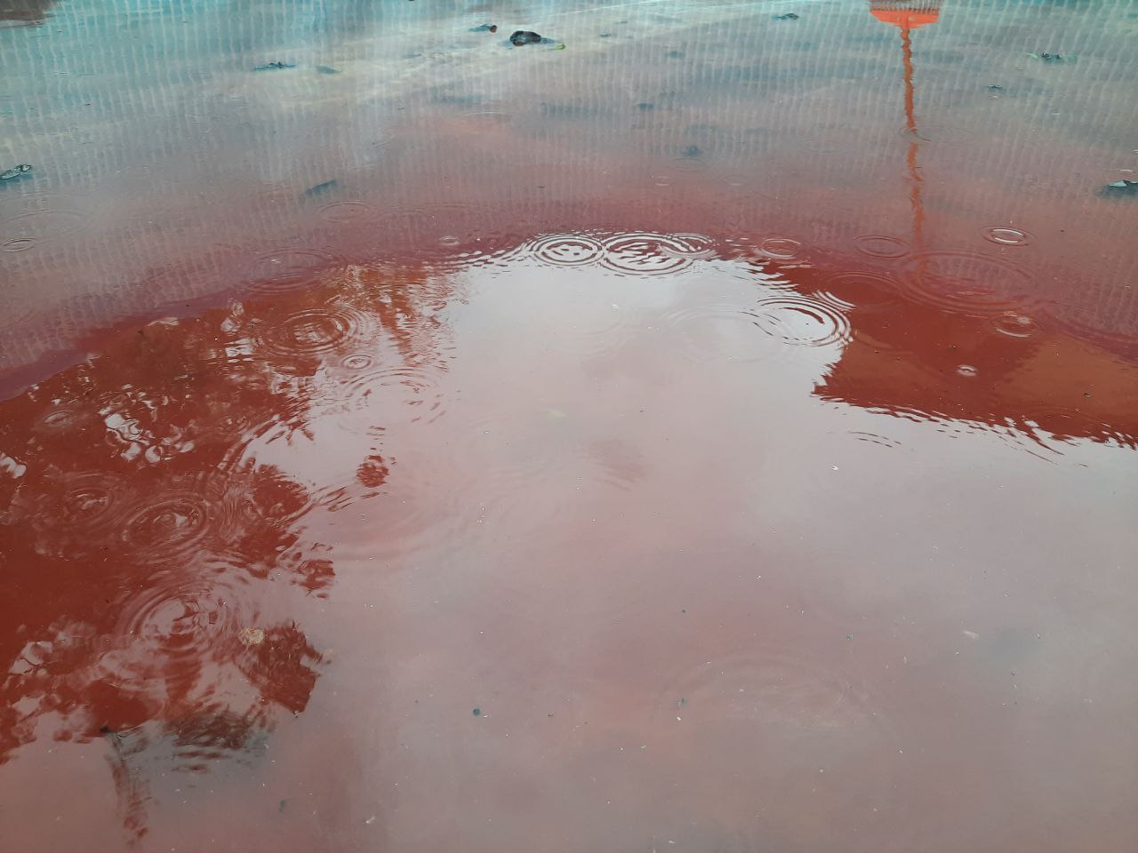 Частинки ґрунту або пилу: Сильні вітри, що передували дощу, могли підняти в повітря дрібні частинки ґрунту або пилу, які потім випали на землю разом з опадами.
