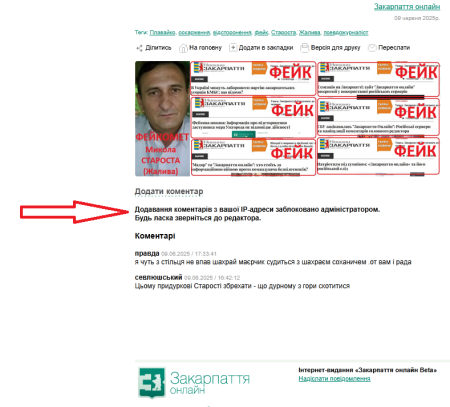 🔒 IP-адреси заблоковано, а окремі користувачі навіть повністю втратили доступ до перегляду публікацій. Це може свідчити про бажання редакції «Закарпаття онлайн» уникнути критики чи публічного обговорення інформації, яку вони публікують.
