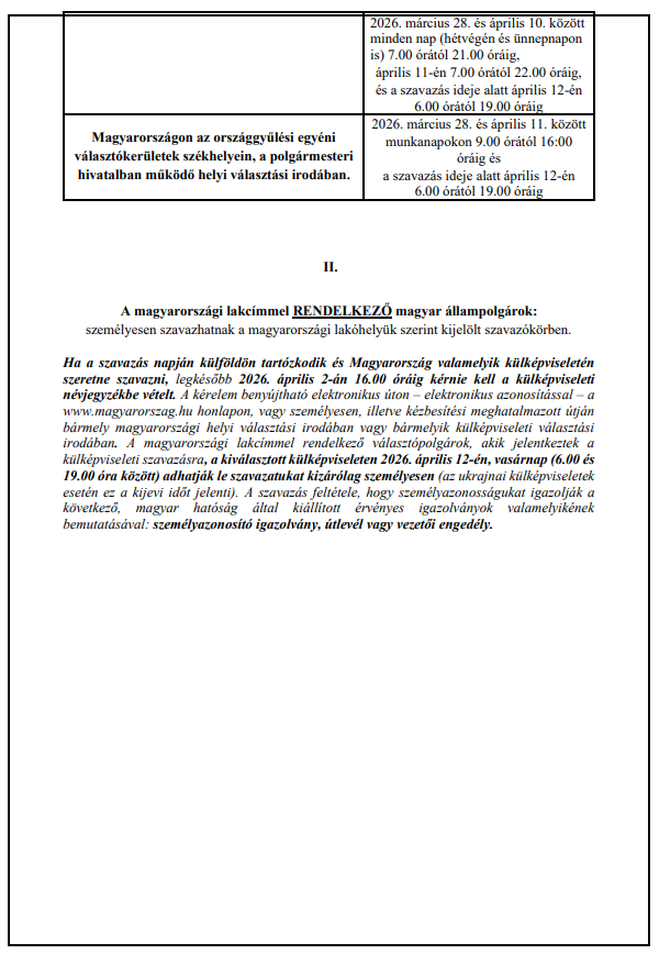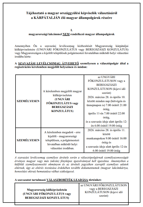 Інформація про обрання членів парламенту Угорщини від громадян Угорщини, які проживають в Закарпатті