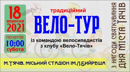 18 вересня 2021 р. в рамках святкування Дня міста Тячів, відбудеться традиційний, яскравий вело-тур з командою тячівських велосипедистів з клубу «Вело-Тячів».