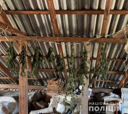 Під час процесуальних дій, у помешканні чоловіка поліцейські виявили та вилучили речовину рослинного походження, схожу на марихуану. Наркотичні засоби чоловік зберігав в різних ємкостях. Також на горищі будинку поліцеські виявили висушені стебла, схожі на коноплі. Ще чотири кущі коноплі поліцейські вилучили з присадибної ділянки домогосподарства. Вага вилученого склала майже 1 кг.