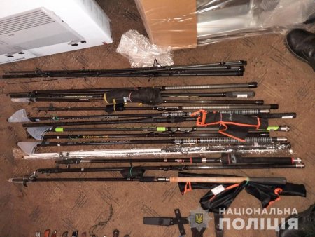 Правоохоронці також знайшли схованку з краденим. Вони вилучили 5 пневматичних рушниць, 29 ножів, 13 вудок, 25 стартових патронів, 5 чохлів до ножів, 4 рибальські костюми та по одному рюкзаку та чохлу до пневматичної зброї.
