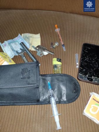 Під час спілкування із керманичем інспектори виявили ознаки наркотичного сп‘яніння у водія. Водій погодився на освідування. Перед медичним закладом чоловік почав нервувати і охоронці порядку провели поверхневу перевірку. Поліцейські виявили під курткою керманича сумку, в якій містився шприц із прозорою речовиною, ймовірно, наркотичною.