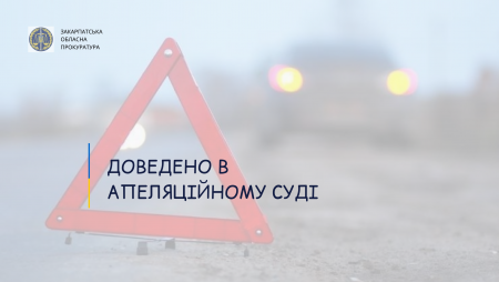 Прокурором Закарпатської обласної прокуратури в апеляційному суді доведено вину жителя Мукачівщини у порушенні правил дорожнього руху, що призвело до тілесних ушкоджень потерпілим (ч. 2 ст. 286 КК України).
