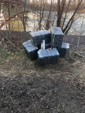 Перевіряючи вказаний оперативниками напрямок, військовослужбовці виявили на березі річки Тиса, якою проходить кордон з сусідньою Румунією, пакунки з дев'ятьма ящиками сигарет.