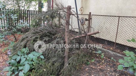 Сьогодні уночі в обласному центрі Закарпаття у дворі будинку на вулиці Руській невідомі спиляли дерево ялини, щоб викрасти причеплений на замок до неї велосипед.