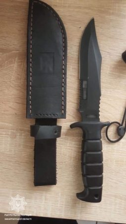 Під час перевірки документів поліцейські помітили, що чоловік поводить себе підозріло і нервує, тому провели поверхневу перевірку. Згодом патрульні виявили у поличці дверей автомобіля предмет, схожий ніж.