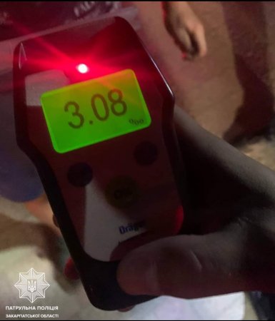 Перевіряючи документи, поліцейські виявили у водія ознаки алкогольного сп‘яніння. Керманич погодився пройти огляд на стан сп‘яніння на місці за допомогою Драгера. Прилад показав 3,08 проміле, що у 15 разів перевищує допустиму норму.