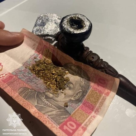 Згодом охоронці порядку виявили серед речей громадянина згорток із зеленою речовиною, зовні схожою на наркотичну та пристрій для куріння.