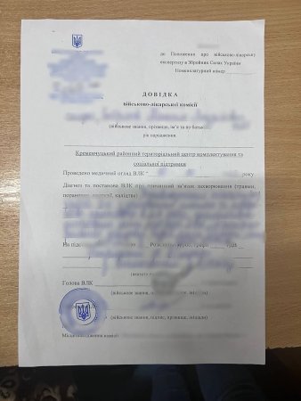 Ще один військовозобов’язаний українець, 41-річний мешканець Харкова, надавши для перевірки такі ж документи з ознаками підробки, зізнався, що через знайомого знайшов ділків, які за 2 тисячі доларів США проставили йому підроблені штампи у військовий квиток та виготовили фіктивну довідку про проходження військово-лікарської комісії.
