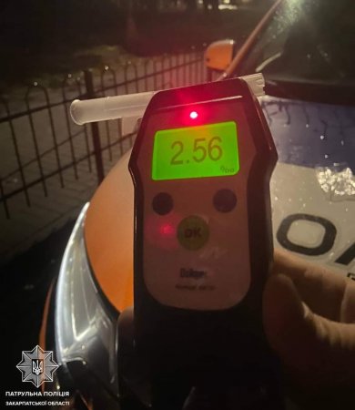Також інспектори помітили ознаки алкогольного сп‘яніння у керманича. Чоловік пройшов огляд на стан сп‘яніння на місці за допомогою Драгера. Прилад показав 2,56 проміле, що у майже 13 разів перевищує допустиму норму.