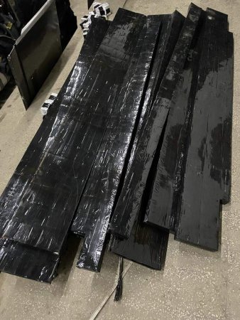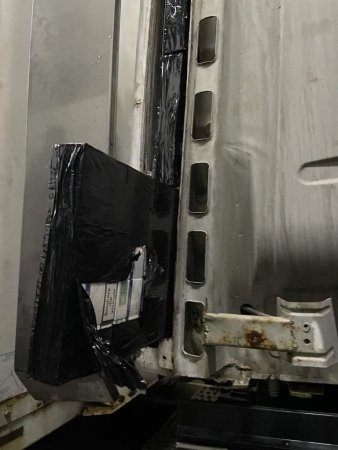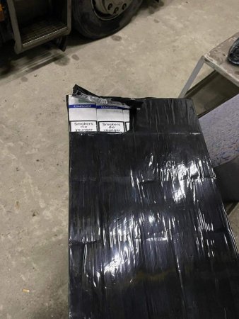 Наразі вже дістали 450 блоків сигарет марки «COMPLIMENT» (безакцизні), які заздалегідь ділки приховали у спеціально виготовлені тайники тягача та для маскування обгорнуті чорним поліетиленом.