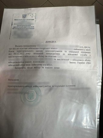 Для перевірки документів, разом із паспортом, молодик надав інспектору довідку військово-лікарської комісії та тимчасове посвідчення військовозобов’язаного, у яких було вказано, що пред’явник непридатний до військової служби та знятий з військового обліку.