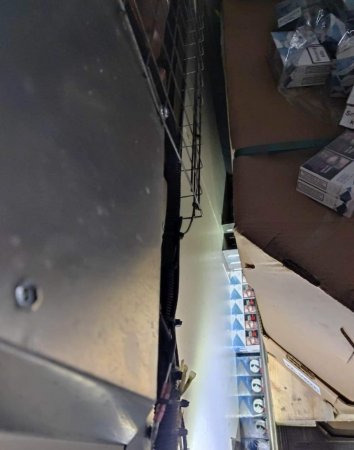 Аби приховані сигарети не випадали на підлогу, «кмітливі» контрабандисти закріпили їх скотчем до нижньої частини передньої стінки та нижніх захисних рейок рефрижератора.