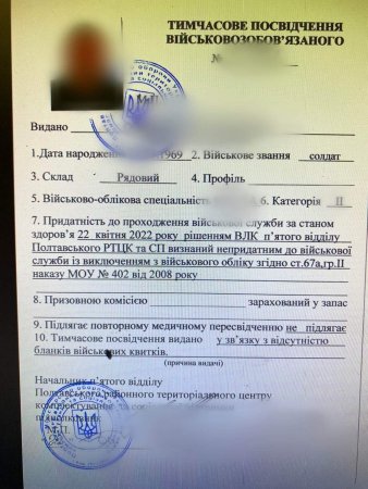 Потрапити до сусідньої Угорщини намагався 53-річний громадянин України, житель Полтавщини. Для перетину кордону чоловік обрав пункт пропуску «Лужанка». Як підставу для виїзду за кордон під час воєнного стану, чоловік надав для перевірки документів тимчасове посвідчення військовозобов’язаного та довідку військово-лікарської комісії, у яких інспектор прикордонного контролю виявив ознаки підробки.