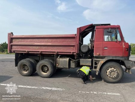 Сьогодні, близько 10-ї години, на трасі М-06 Київ-Чоп, поблизу села Барвінок на Ужгородщині, інспектори відділу безпеки дорожнього руху в рамках відпрацювання зупинили водія, який рухався на вантажівці Tatra.