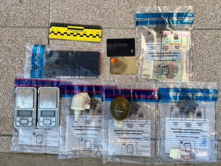 Для фіксації та вилучення доказів за місцем проживання фігуранта слідчі провели обшук. Серед вилученого: наркотики, електронні ваги, гроші та бойова граната РГН із запалом до неї.
