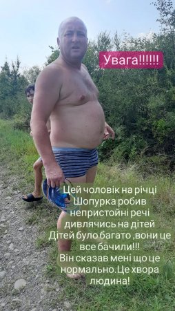 Була сьогодні на річці Шопурка і не пристойно поводився при дітях з своїм органом. ........