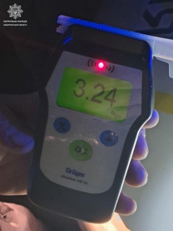 Під час спілкування охоронці порядку помітили у керманича явні ознаки наркотичного спʼяніння, на що йому одразу запропонували пройти огляд на стан сп’яніння за допомогою приладу драгер. Результат — 3, 24 проміле, а це у понад 16 разів перевищує допустиму норму алкоголю в крові.