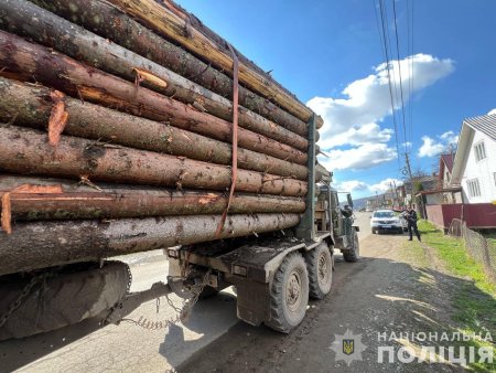 На Закарпатті поліцейські продовжують заходи з виявлення та припинення злочинів, скоєних проти довкілля. Так, вчора, у населеному пункті Дубове Тячівського району було зупинено для перевірки вантажний транспортний засіб, яким перевозили деревину породи «Ялина».