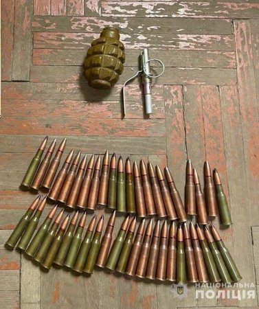 З місця події слідчі вилучили гранату Ф-1 із запалом, 44 набої до автоматичної зброї та грошові кошти, які зловмисник отримав як плату за товар.