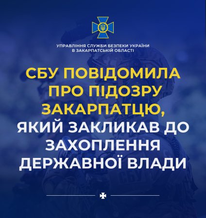 СБУ повідомила про підозру закарпатцю, який закликав до захоплення державної влади