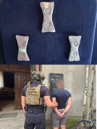 Срібні злитки виявили на території Хустського району. За словами підозрюваного, зливки він знайшов у підвалі свого будинку — вони лишилися там від його прабабусі, а вона знайшла скарб під час того, як працювала на городі позаду будинку.