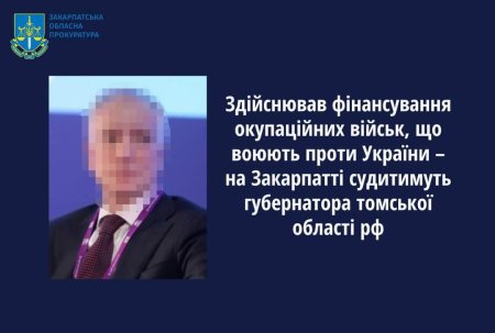 Закарпатська обласна прокуратура скерувала до суду обвинувальний акт щодо губернатора томської області рф за фактами фінансування дій, вчинених з метою зміни меж території та державного кордону України (ч. 3 ст. 110-2 КК України).