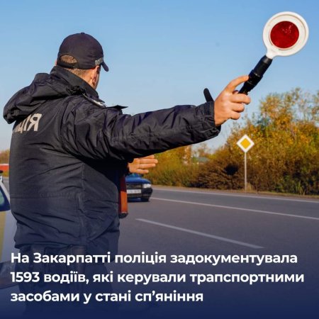 На Закарпатті поліцейські виявили та притягнули до відповідальності майже 1600 водіїв, які керували транспортом у стані сп’яніння🔻