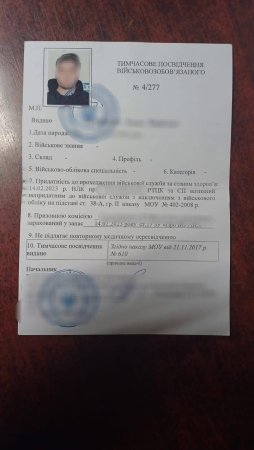 24-річний житель Києва прямував потягом «Чоп – Відень» через пункт пропуску «Чоп (Дружба)». На контроль разом з паспортом він надав тимчасове посвідчення військовозобов’язаного та довідку ВЛК про непридатність до військової служби. У ході перевірки документів прикордонний наряд встановив, що довідка та посвідчення містять ознаки підробки.