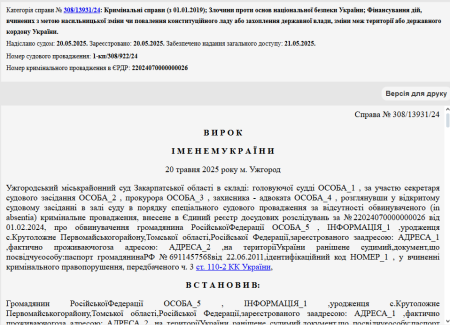 20 травня 2025 року Ужгородський міськрайонний суд виніс вирок у резонансній справі щодо громадянина РФ — губернатора Томської області Володимира Мазура (прізвище закарпатське – ред.), обвинуваченого у фінансуванні агресії проти України.