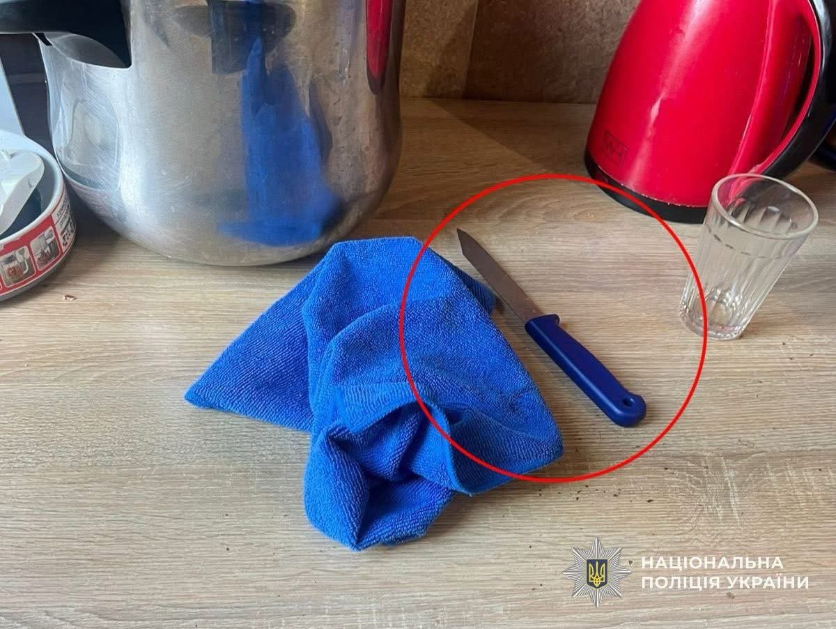 Повідомлення про госпіталізацію молодого чоловіка з ножовим пораненням надійшло до поліції близько 14:40. На місце виїхала слідчо-оперативна група, яка встановила, що під час побутового конфлікту чоловік у стані алкогольного сп’яніння вирішив "виховати" сина кулаками, але згодом дістав ніж і вдарив його у грудну клітину.