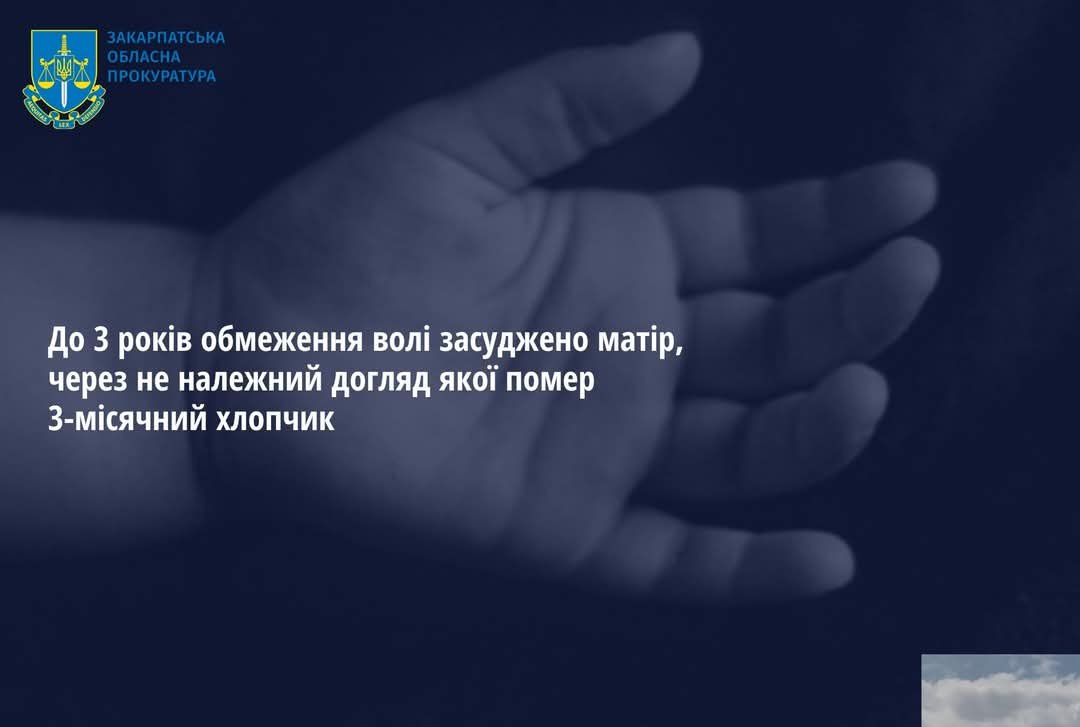 На Закарпатті винесено вирок у жахливій справі, що стосується неналежного догляду за дитиною, який призвів до її смерті. За принципової позиції прокурора Ужгородської окружної прокуратури, Великоберезнянський районний суд визнав винною 38-річну мешканку Ужгородщини у злісному невиконанні батьківських обов’язків, що спричинило смерть немовляти (стаття 166 Кримінального кодексу України). Жінку засуджено до 3 років обмеження волі.