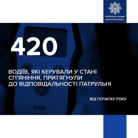 Задумайтесь: 420 осіб свідомо сіли за кермо у стані сп'яніння. Скільки з них були зупинені поліцією вчасно? А скільки залишились непоміченими і продовжують їздити дорогами Закарпаття, загрожуючи нашим життям?