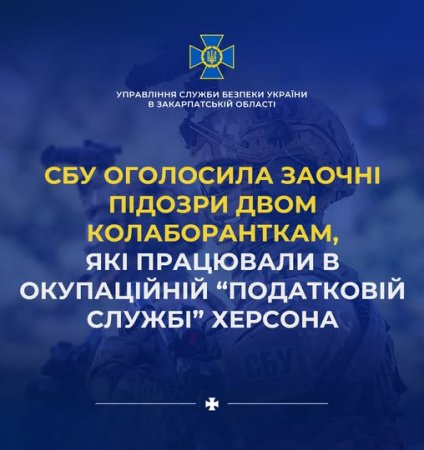 Двом колишнім працівникам фіскальної служби з Херсонщини, які під час тимчасової окупації міста перейшли на бік ворога, заочно повідомлено про підозру. Про це інформує пресслужба Закарпатської обласної прокуратури.