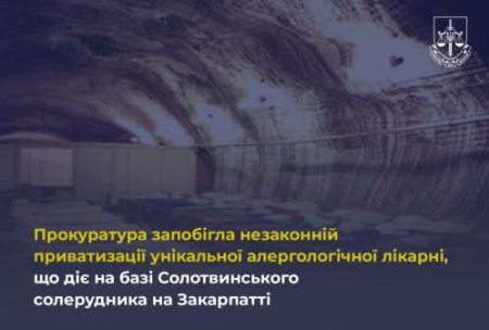 Унікальна Солотвинська обласна алергологічна лікарня, що вже понад півстоліття рятує тисячі українців з хронічними захворюваннями легень, ледь не опинилася в приватних руках! Завдяки рішучим діям Закарпатської обласної прокуратури, цей унікальний медичний заклад, розташований на базі легендарного Солотвинського солерудника, вдалося захистити від незаконної приватизації.