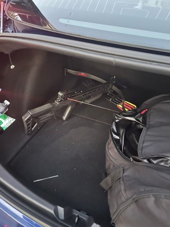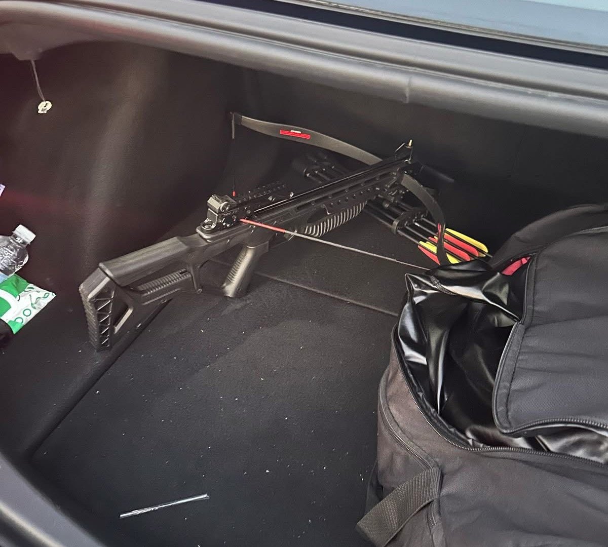 Під час поглибленої перевірки електромобіля, який рухався через контрольний пост, військовослужбовці виявили в багажнику арбалет і комплект стріл.
