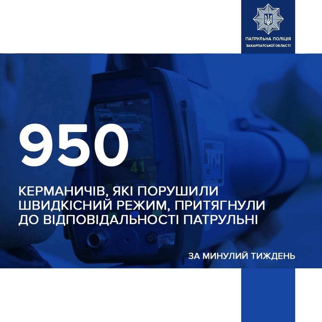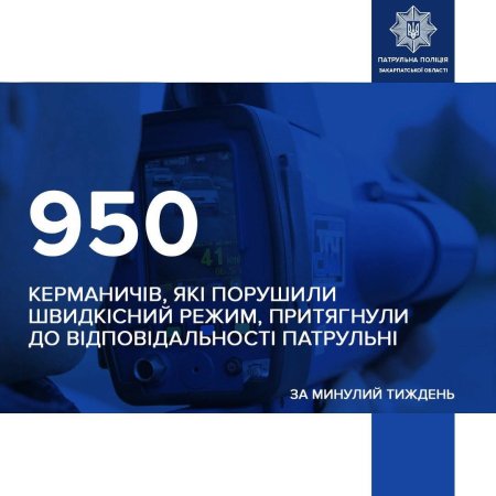 Лише за минулий тиждень патрульні поліцейські винесли 950 постанов за порушення швидкісного режиму. Це свідчить про те, що перевищення дозволеної швидкості залишається однією з найпоширеніших причин аварій на українських дорогах.