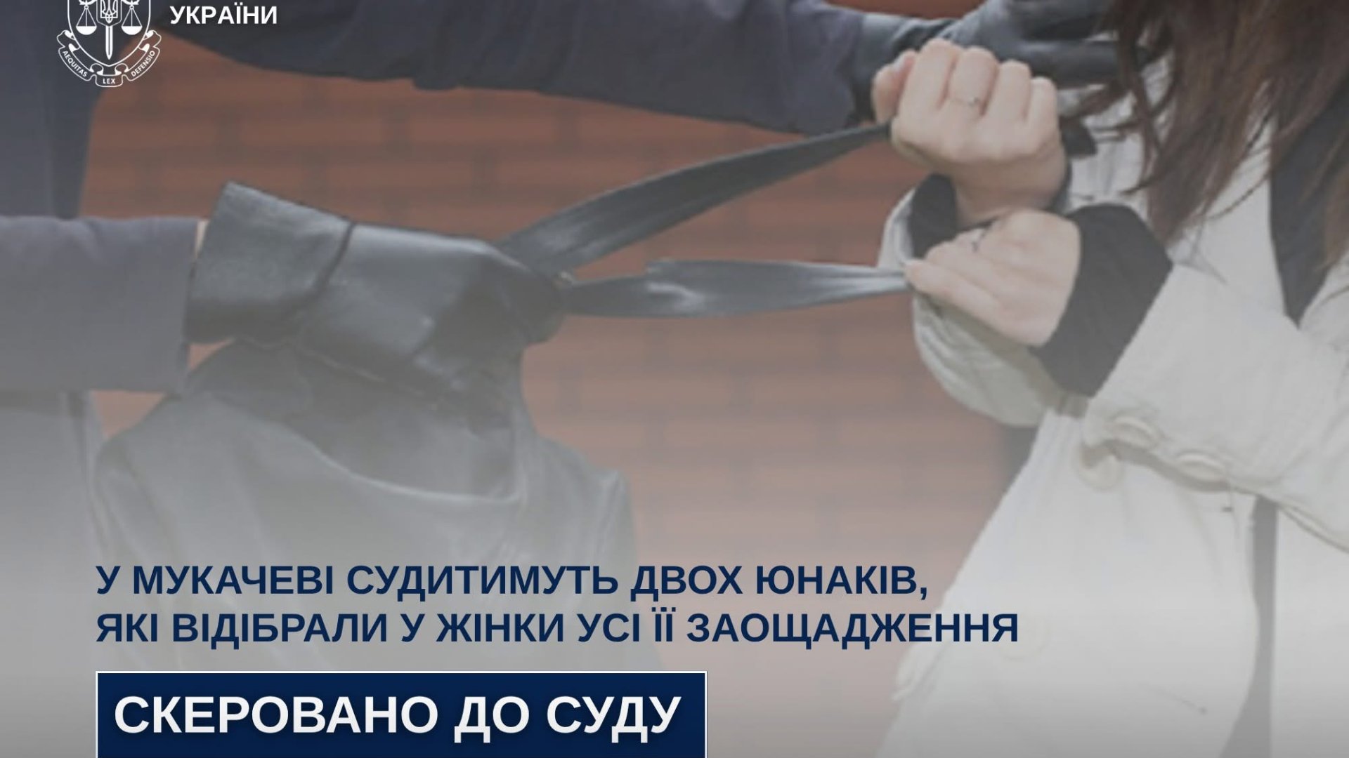 На Закарпатті до суду скеровано обвинувальний акт стосовно двох молодиків, які вчинили грабіж у Мукачеві, забравши усі заощадження у жінки, що була вимушена переїхати через війну.