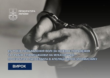 Резонансний вирок: 8,6 років за ґратами для мешканця Мукачівщини, який вдарив ножем і пограбував колишню співмешканку