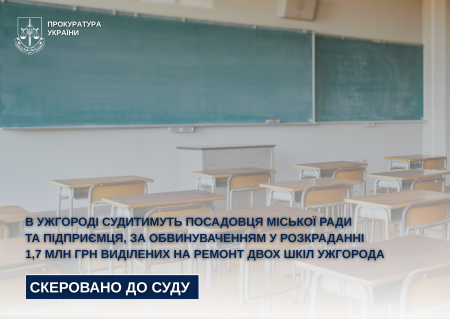 На Закарпатті посадовця міськради та підрядника підозрюють у розкраданні понад 1,7 млн грн під час ремонту шкіл